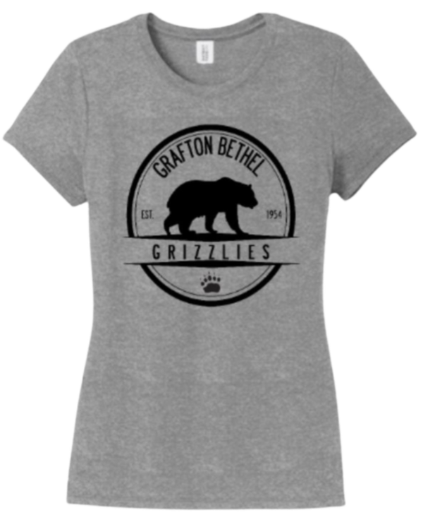 The perfect tee crafted from three yarns for carefree style. Ladies cut. Classic grizzly design.