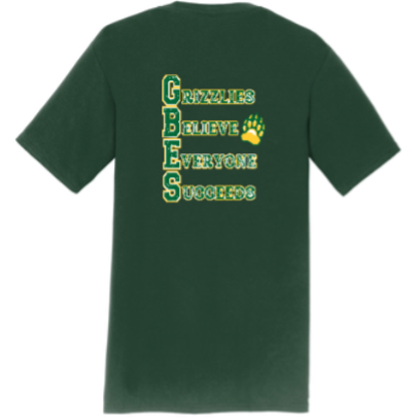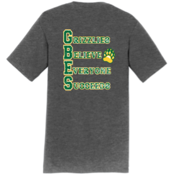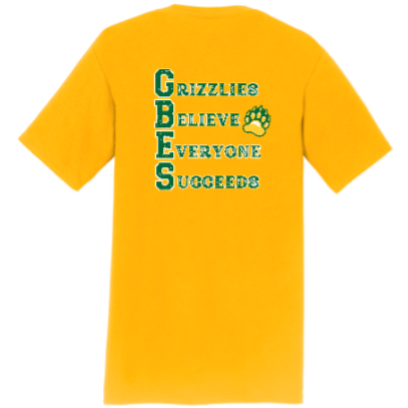 100% ring spun cotton tee. Acronym design Grizzlies Believe Everyone Succeeds. Stylized G on chest.